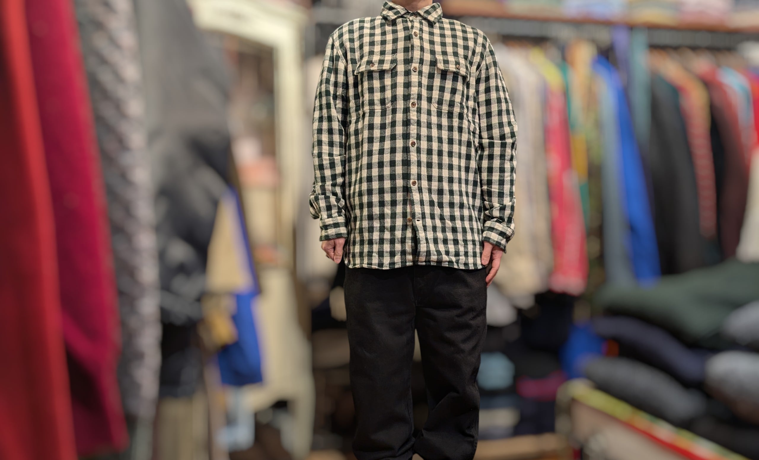 最近気に入っているスタイリングはネルシャツに
