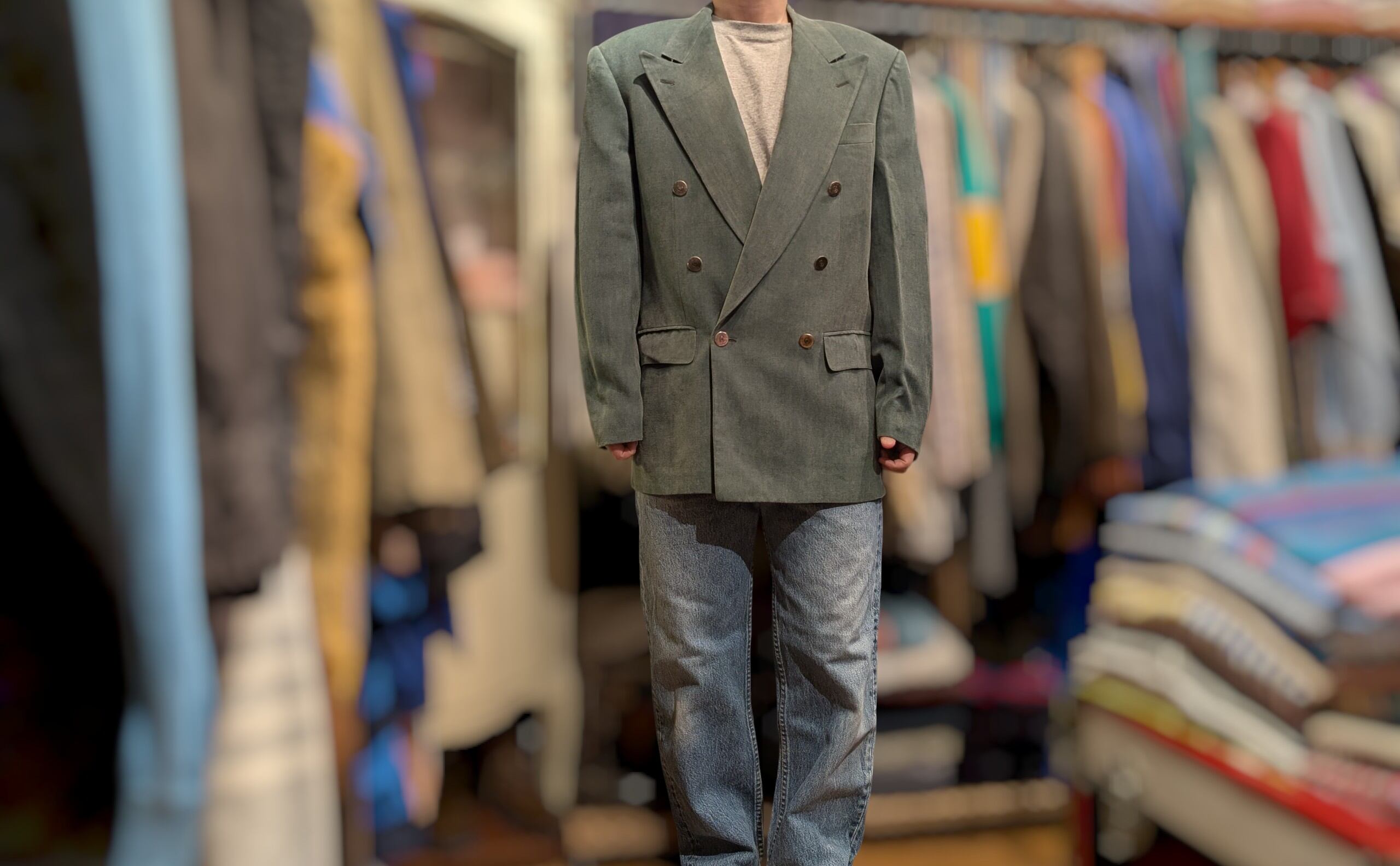 ペールトーンのグリーンが映えるダブルの