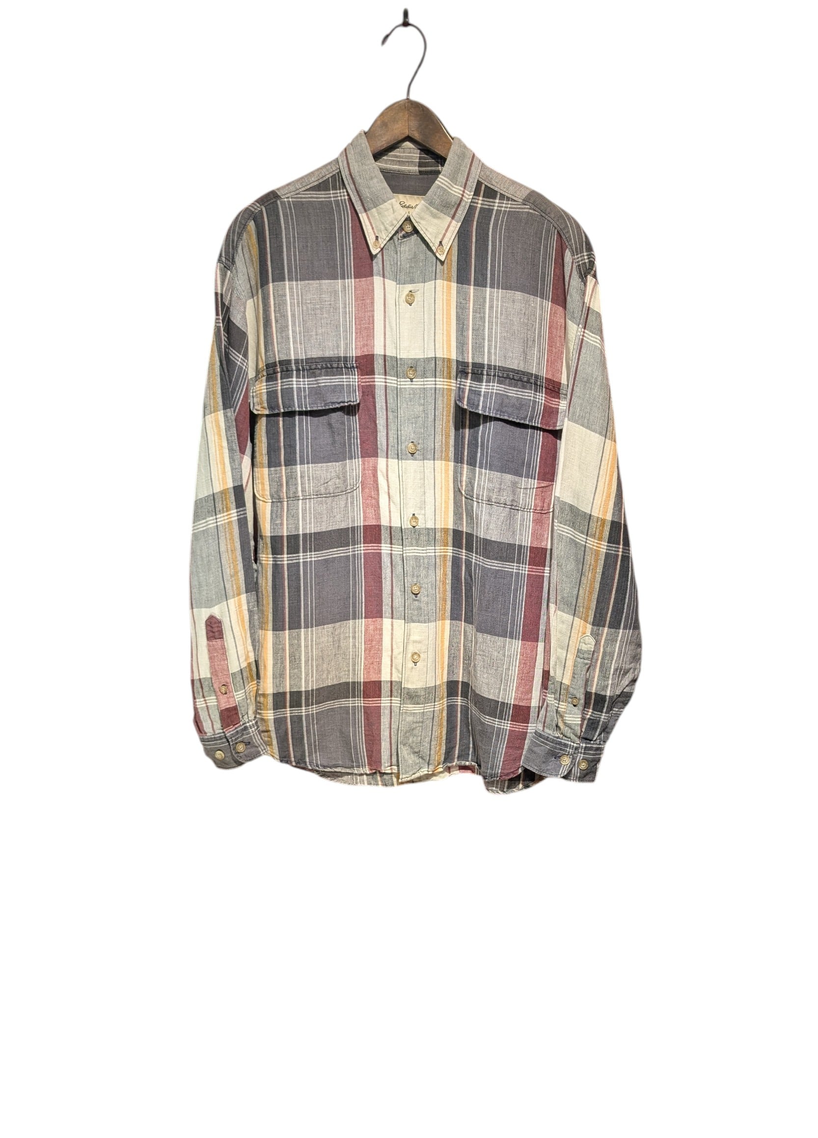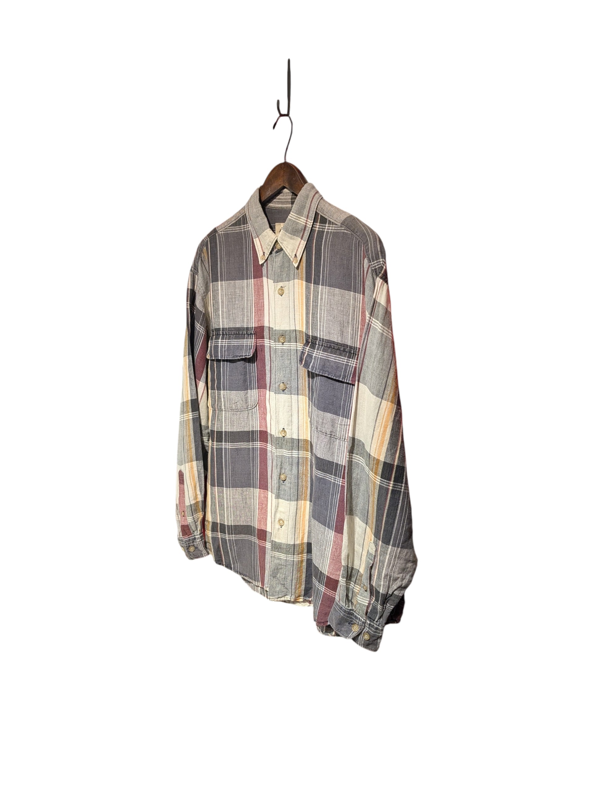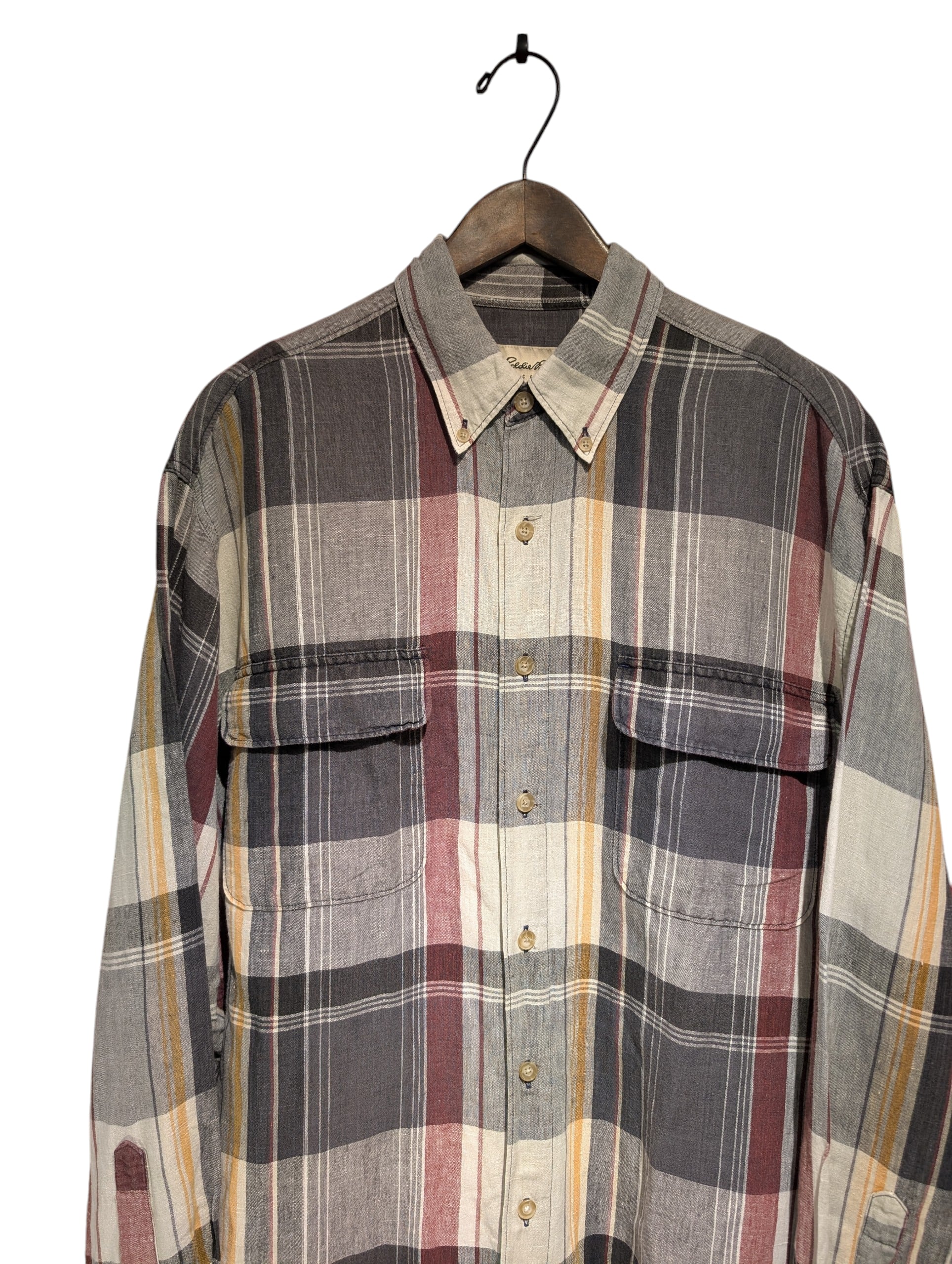 90s〜 EdiieBauer linen×Cotton Buttondown CheckShirt
