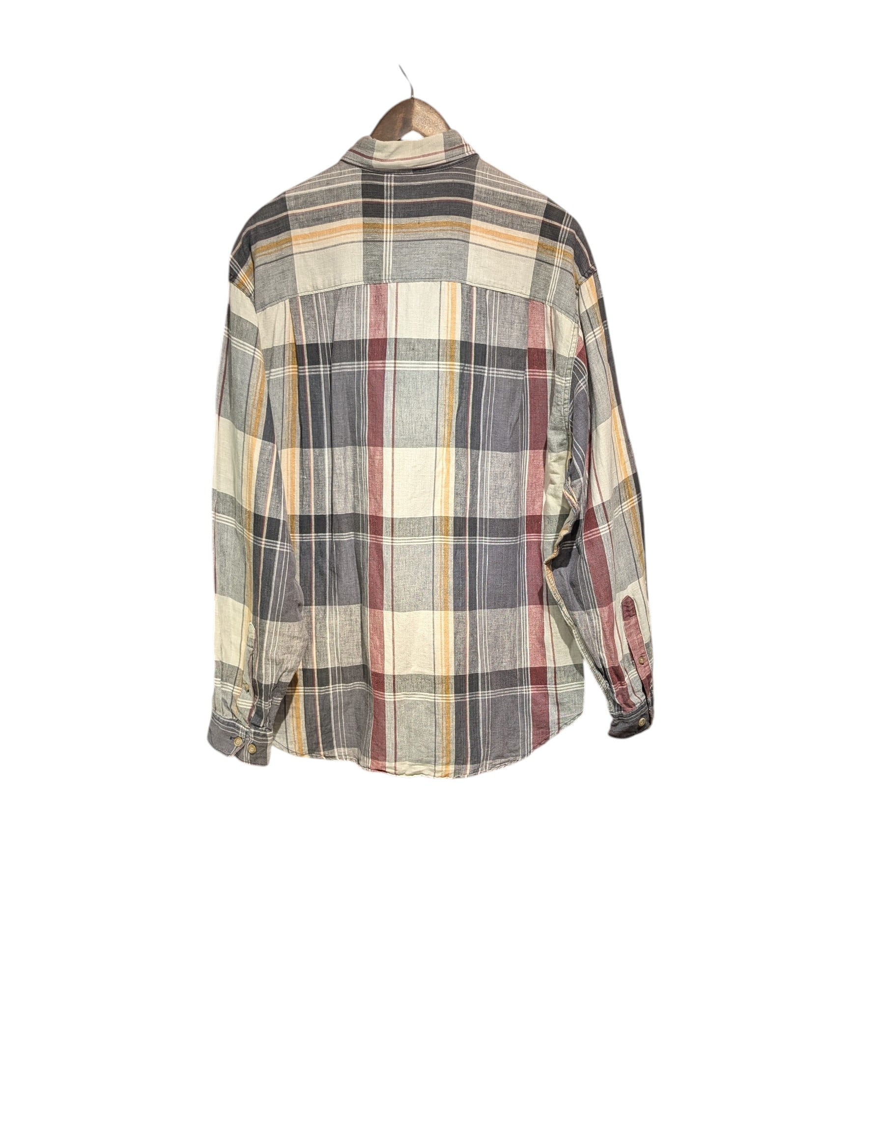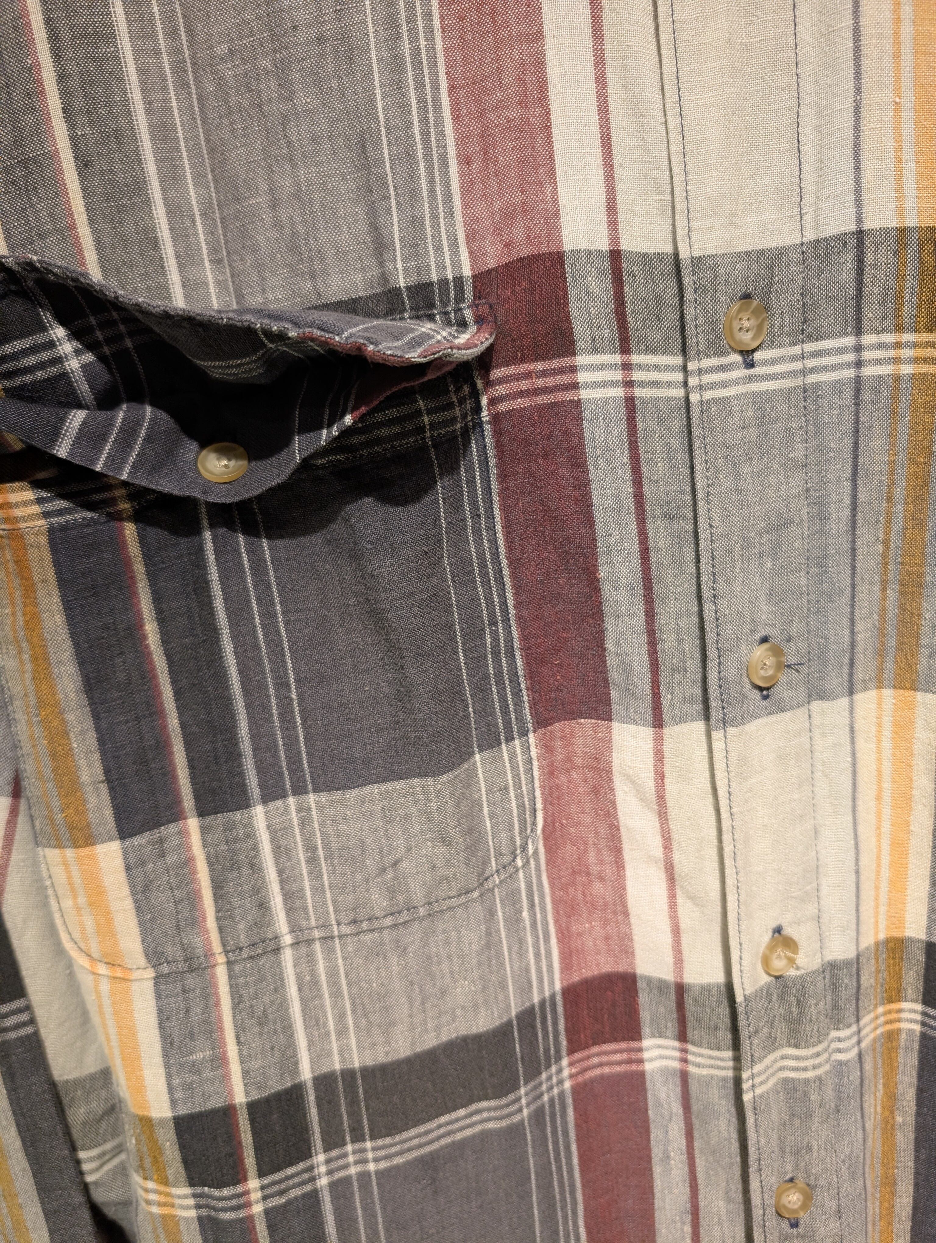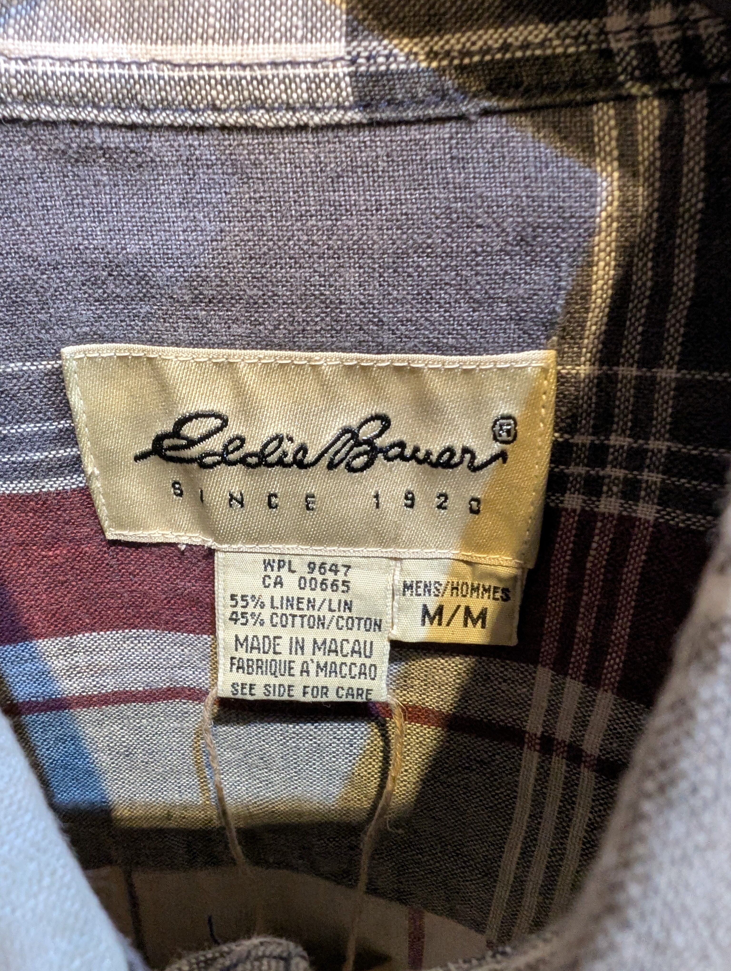 90s〜 EdiieBauer linen×Cotton Buttondown CheckShirt