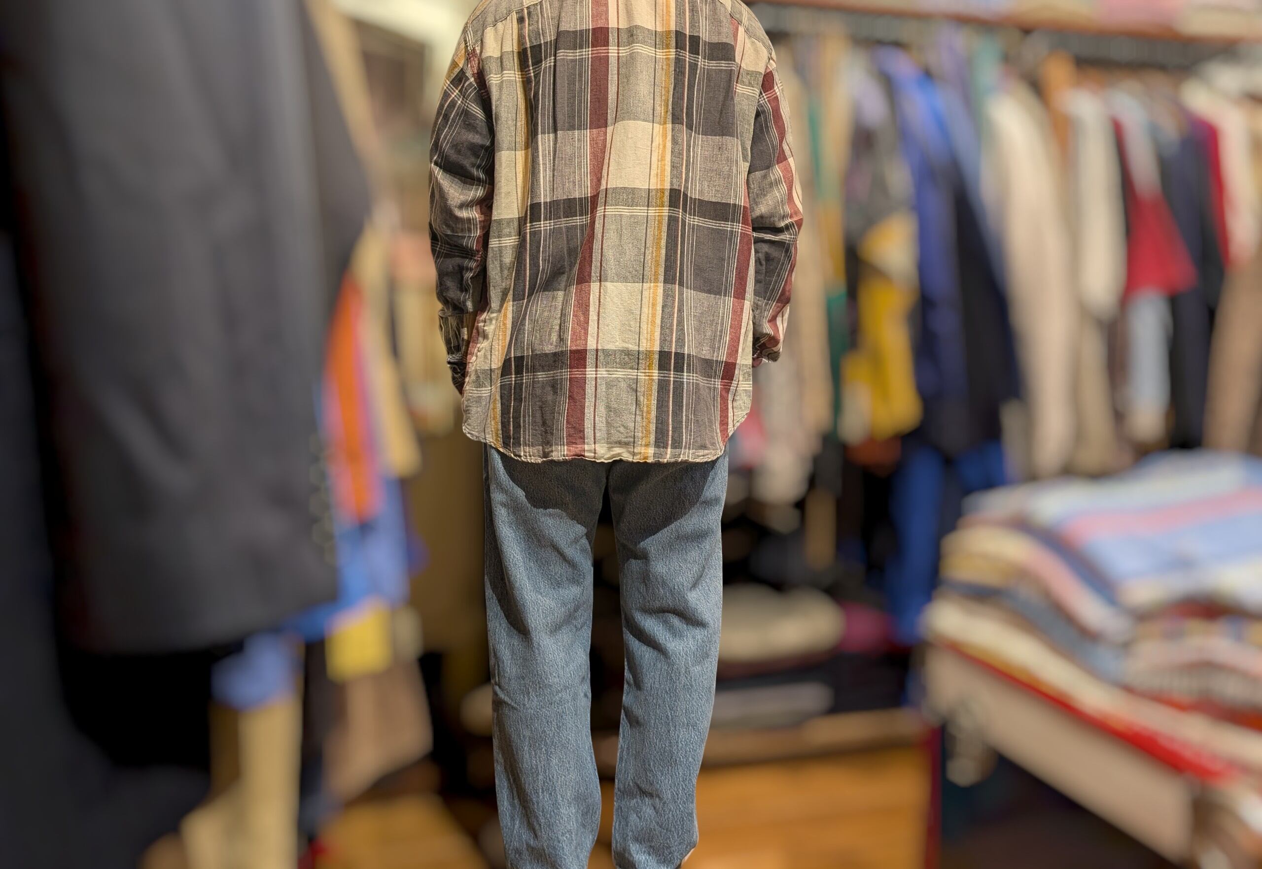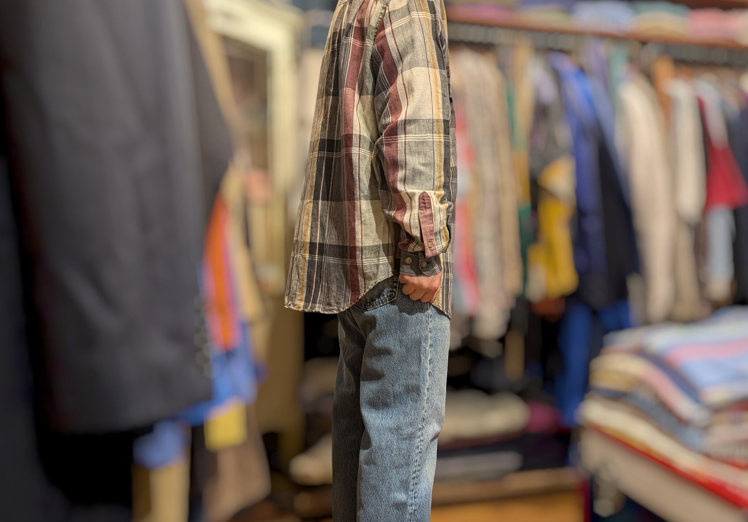 リネンコットンのチェックシャツ