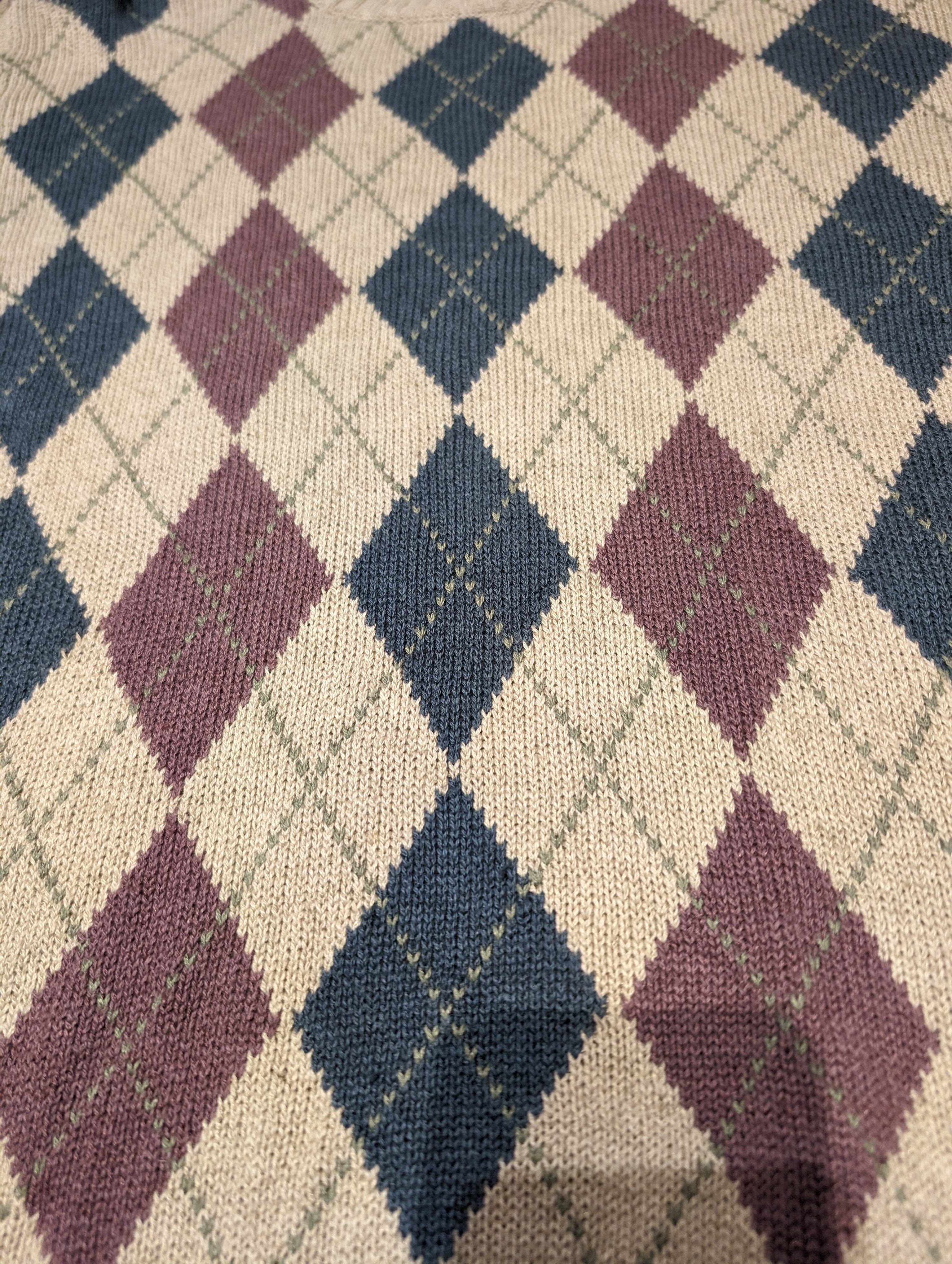 90s Brooksbrothers linen×Cotton shortsleeveargyleknit