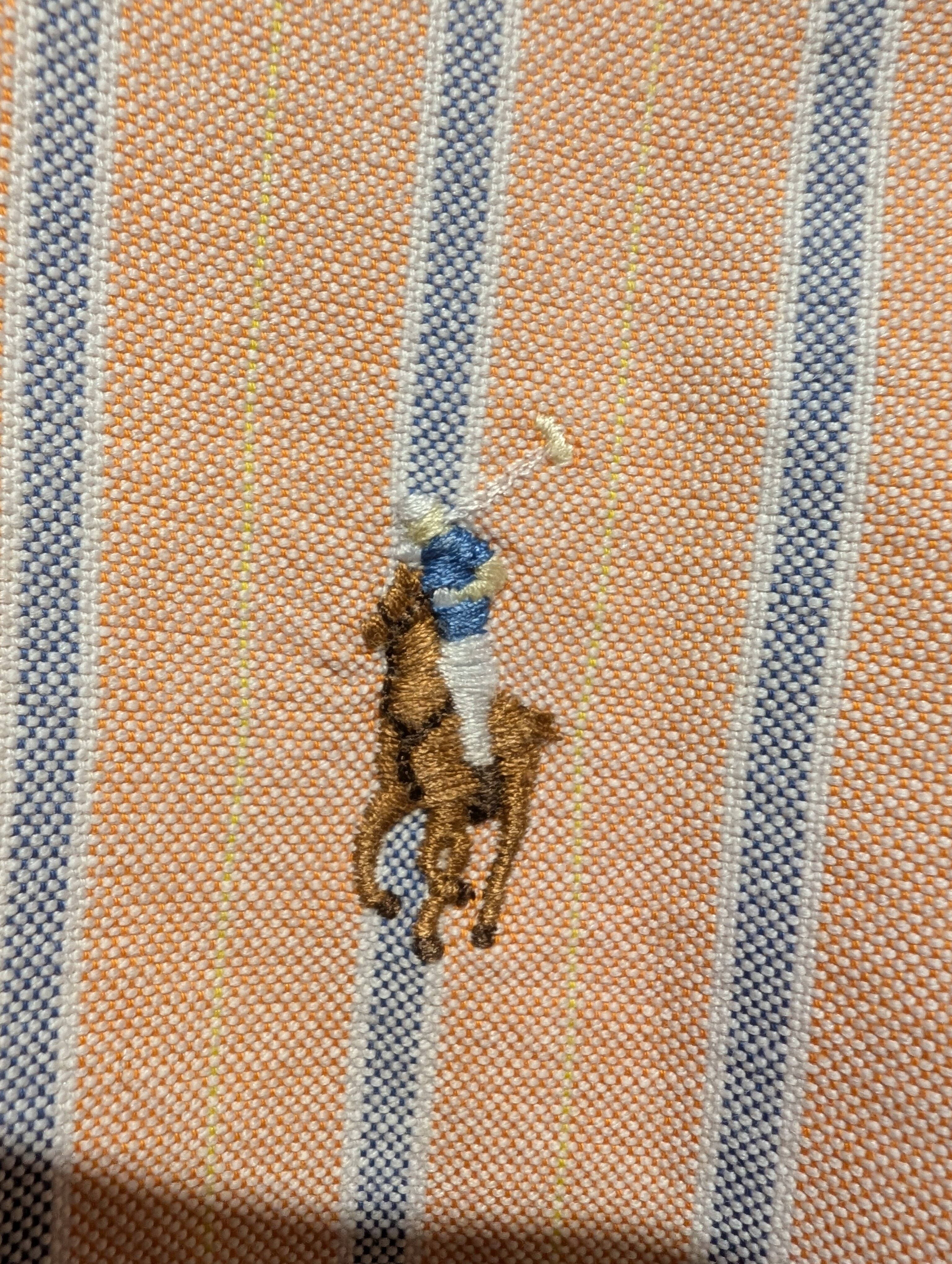 しっかりとしたオックスフォード地にオレンジのシャーベットカラーのストライプ