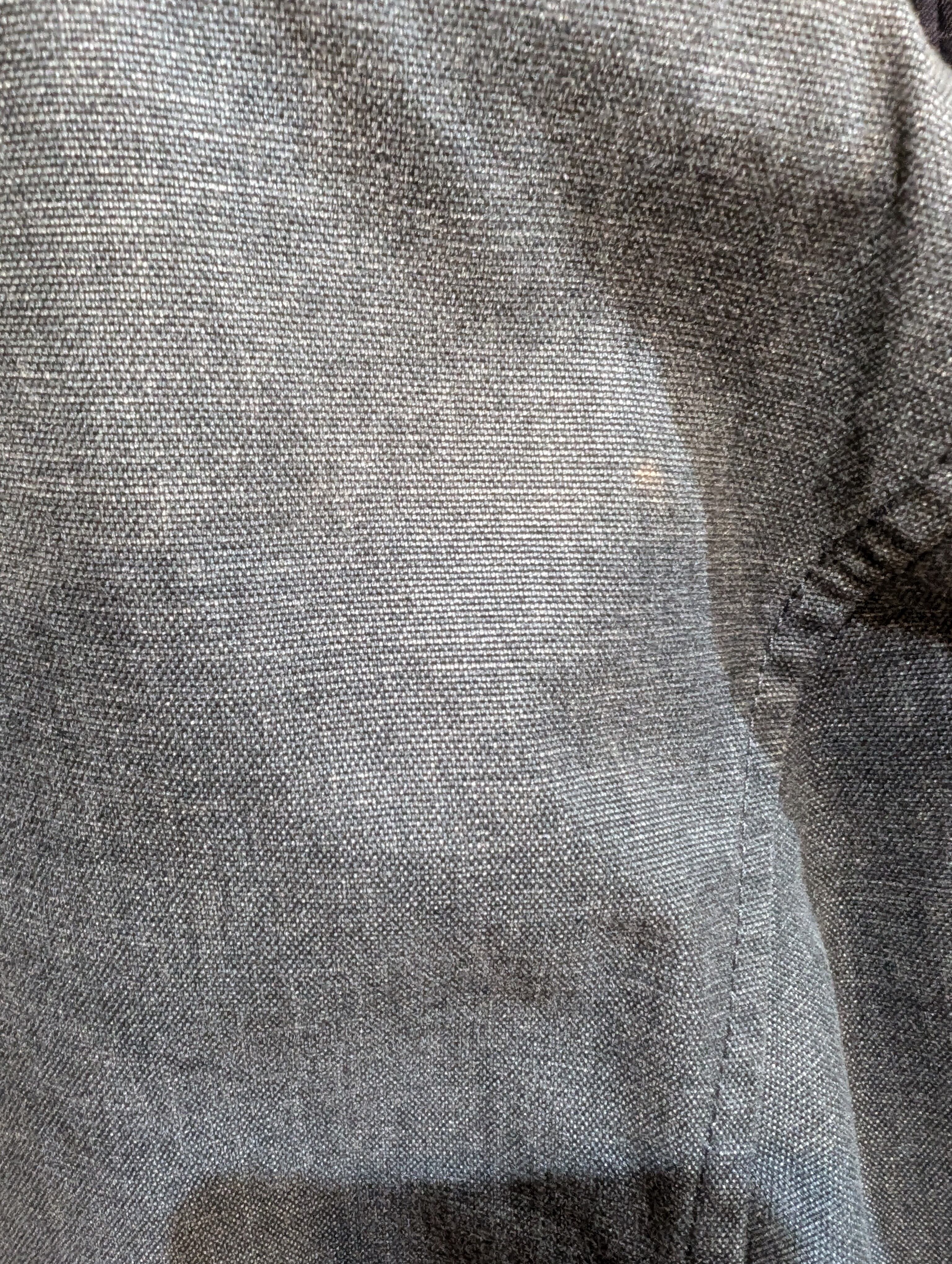 肩に汚れ、チェック柄のポケットに変色あり